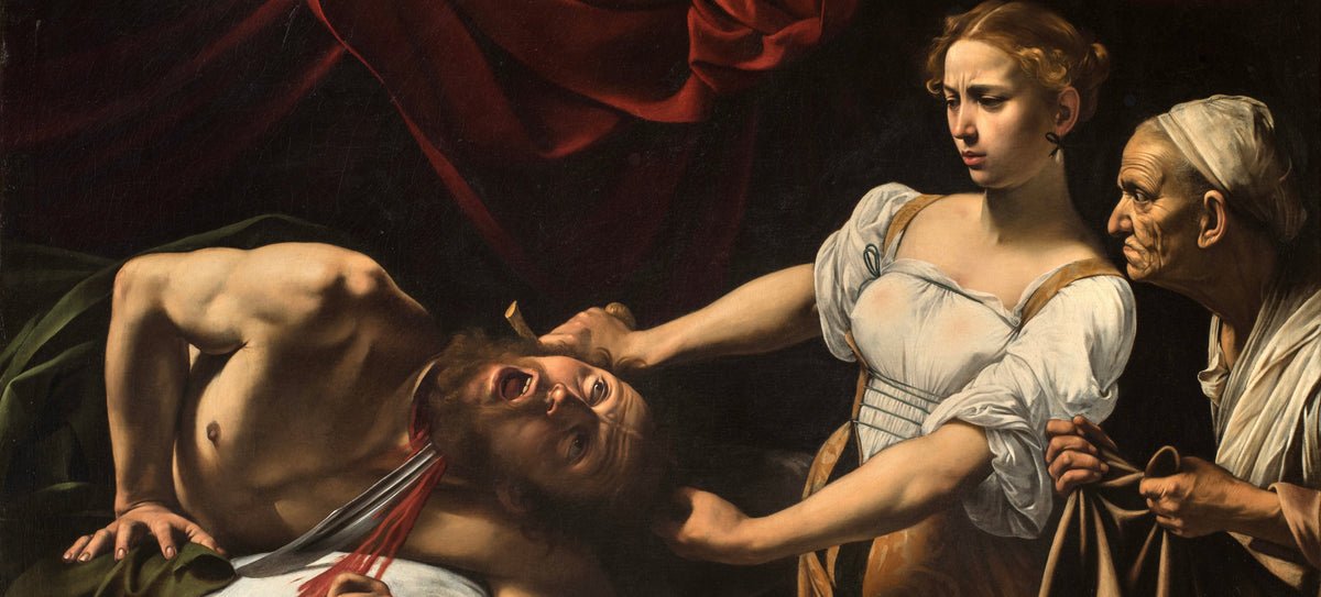 Today we take a quick look at a custom falchion loosely based on one portrayed in Caravaggio’s 1598-ish Judith Beheading Holofernes. The sword portrayed in the painting features a double fullered blade with a curved profile and clipped point and bronze or gilded furniture.