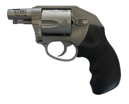 The Boomer is the ultimate carry compact revolver that is powerful enough to ensure your personal protection. Offered in 9mm, .38 special, .357 and .44 special calibers, these revolvers feature a 2″ extruded 416 stainless-steel portedbarrel with a trenched rear sighting system and a concealed hammer for snag-free performance. The frame and cylinder are also crafted from 416 stainless-steel for strength and durability. All models utilize stainless-steel components andhave a combat rubber grip. Offered in five-shot and six-shot capacity, these powerful, concealable revolvers have all the knock-down power you need for personal defense.