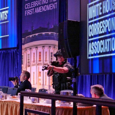Anthony Guglielmi, a Secret Service spokesman, said in a statement on social media the incident occurred near the main magnetometer screening area at the dinner. “The president and first lady are safe along with all protectees,” he said. “One individual is in custody.”