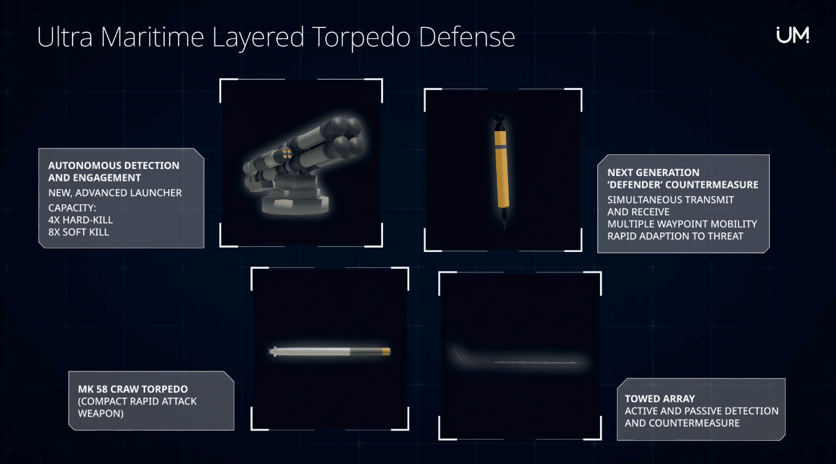 Ultra Maritime has begun to upgrade these bespoke systems both independently, and has begun integration work into a common system. Which in tern allows for a more succinct defense against torpedoes through the streamlining of command decisions, expansion of sensor coverage, qualitatively upgraded countermeasures, and the automation of countermeasure deployment, rather than the current hand-launching method of certain types of expendable decoys.